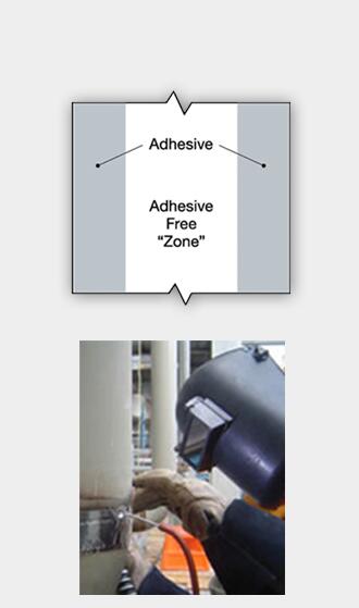 • 只有無粘劑的“區”覆蓋焊接處,因此膠水在焊接過程中不會接觸到管道;實現干凈、無污染的焊接